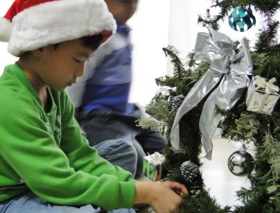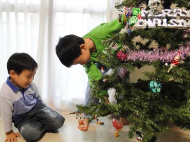 好不容易選好樹,安全回到家後,小熊們馬上迫不及待的開始裝飾聖誕樹。整個週末早上,只見母子三人努力的掛啊掛,終於把熊族在台灣的第一棵聖誕樹裝飾好了!
