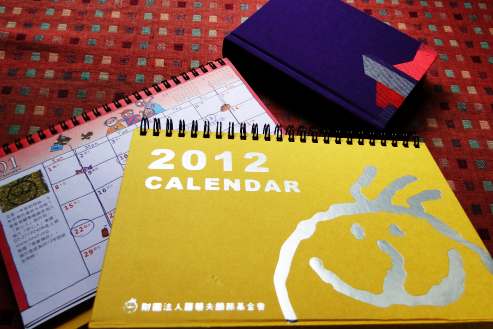 2012年一月的計畫也出來不少了,理想的桌曆卻還沒找到…最近發現格友SAMA推薦的「羅慧夫顱顏基金會」與孩子們創作的「用愛彌補」義賣桌曆,設計充滿童心,大小也剛剛好!於是選了兩本,一本自己用,一本想送給好友…