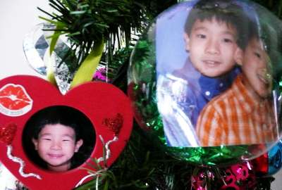 而小熊們最喜歡的裝飾品,就是以前在美國時老師要他們做的「相片吊飾」,孩子珍藏了好幾個幼稚園時期的照片吊飾,每年都會拿出來掛在樹上,看看小時候的自己,笑的更開心。
