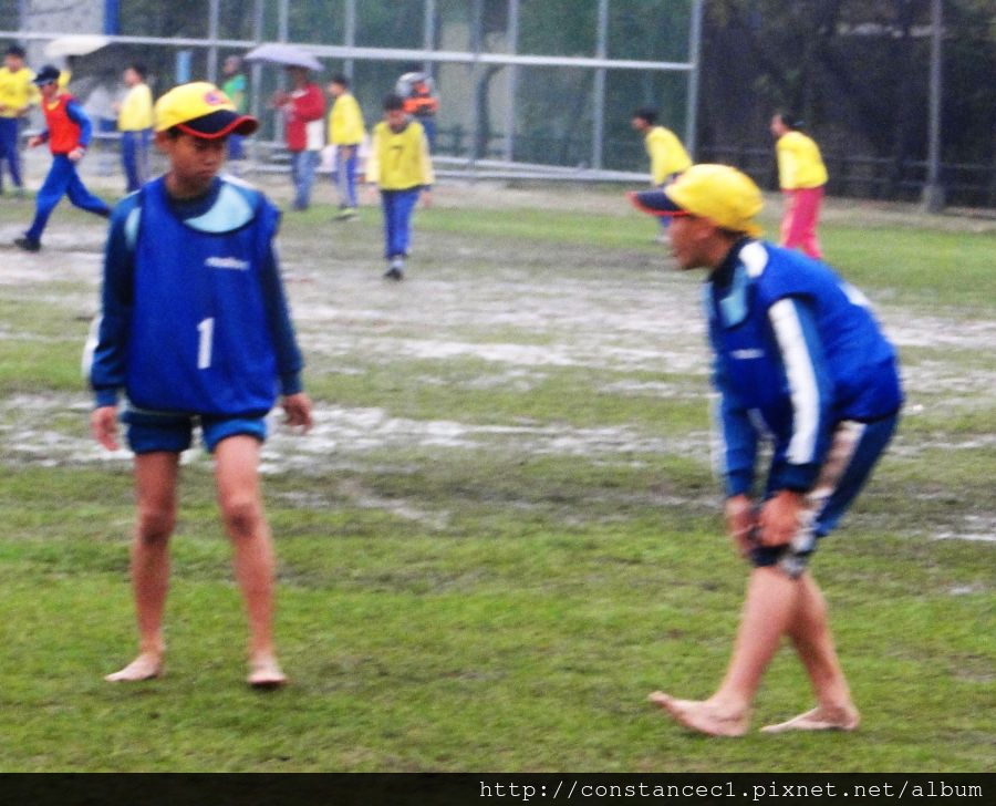*雨中奮戰,我們的孩子沒有釘鞋,因為推廣的是"簡易式棒球",